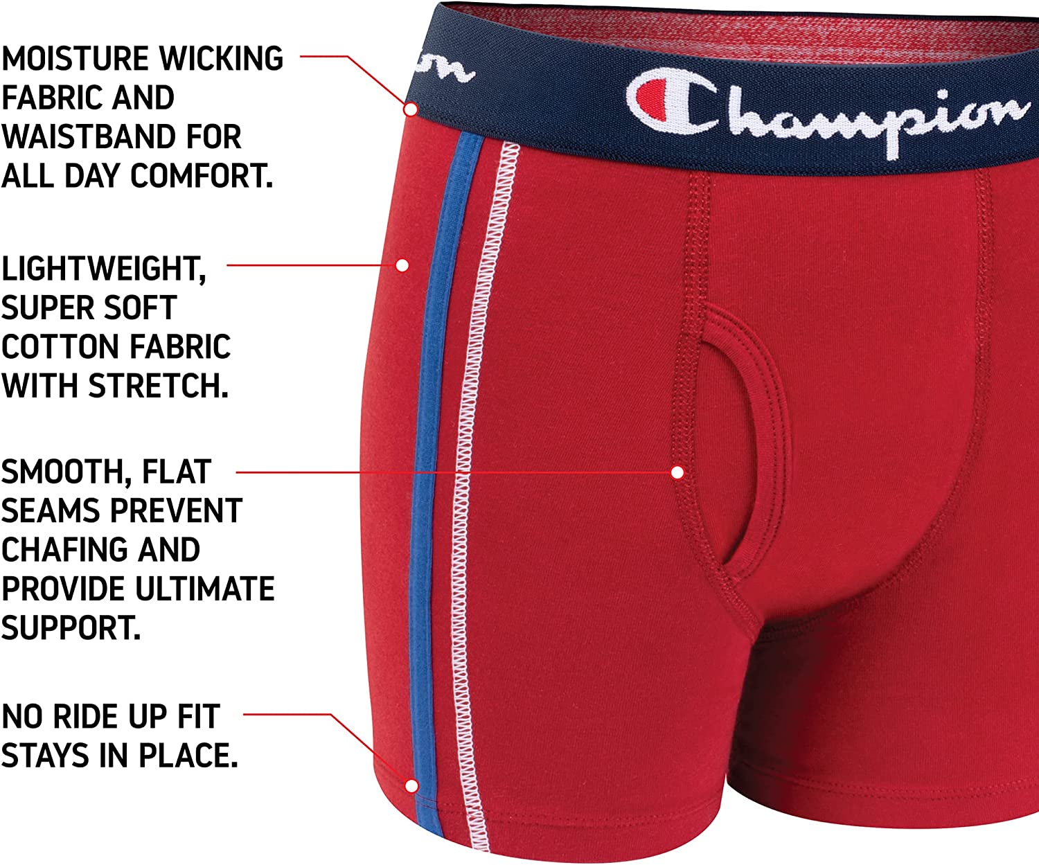 Champion Boys' Briefs, Cotton Stretch Boxer Briefs, Moisture Transferring, Assorted 4 Pcs