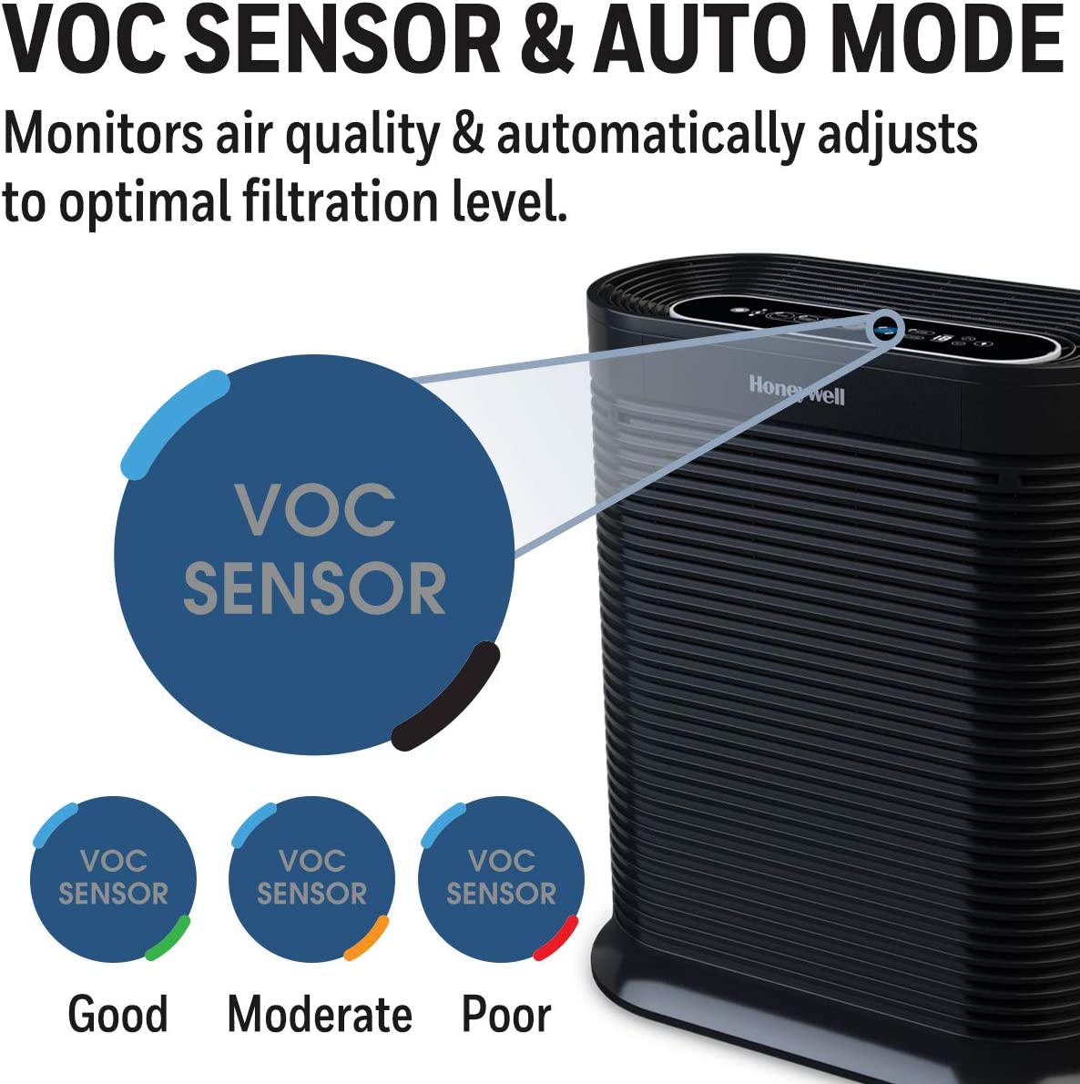 Honeywell HEPA Air Purifier with Bluetooth, Airborne Allergen Reducer for Oversized Rooms (465 Sq. Ft.), Black - Wildfire /smoke, pollen, pet dander, and dust air purifier, HPA8350