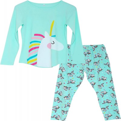 Girls Unicorn Pajamas - 100% Cotton Long Sleeve and Long Pants Toddler Cute Pajama Set for Kids Size 2T-16