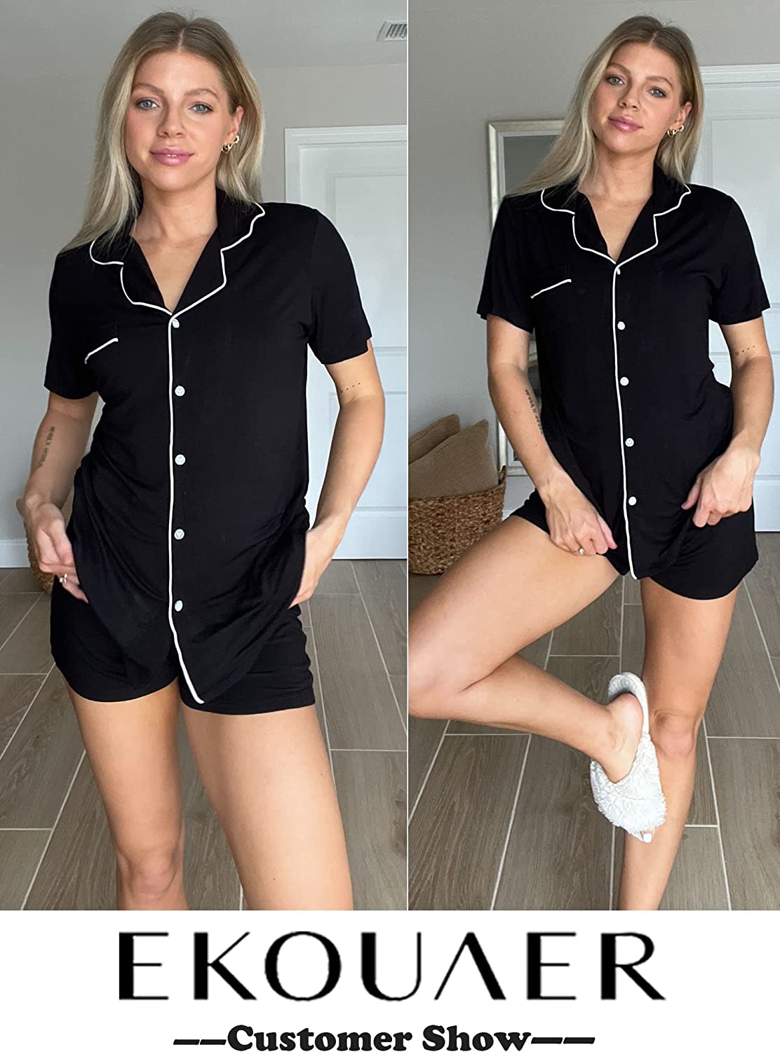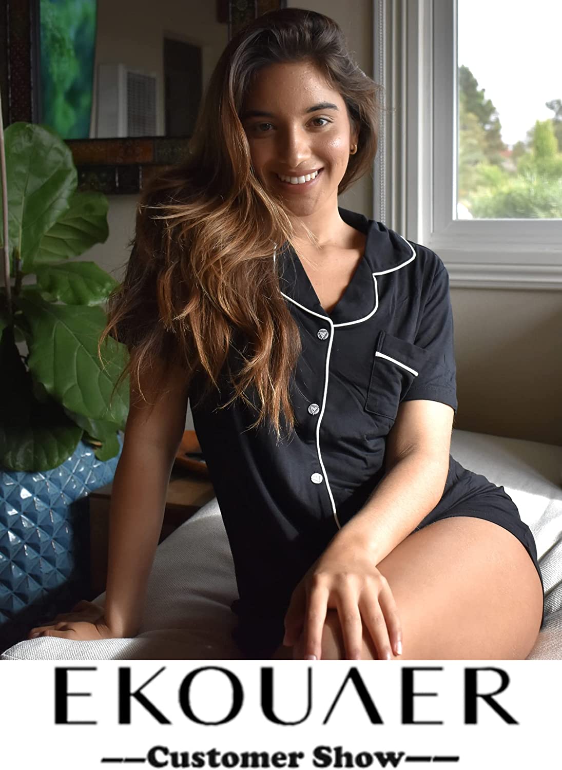 Ekouaer Pajamas Women's Short Sleeve Pajamas Buttoned Homewear Soft Pajama Shorts Set