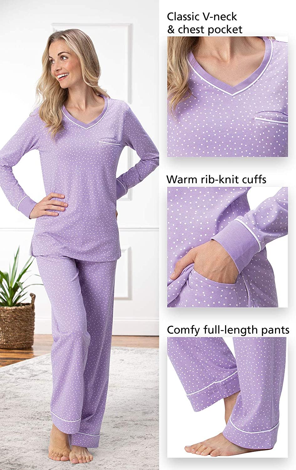 PajamaGram Women's Pajamas - Women's Pajama Set, Pullover Top, 100% Cotton