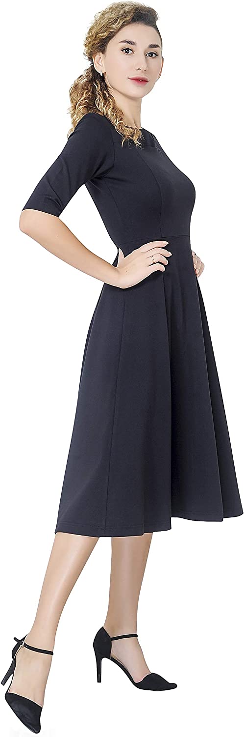 Marycrafts Women's Slim Fit and Flare Tea Midi Dress for Office Business Work