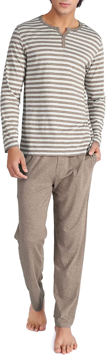 DAVID ARCHY Men's Cotton Pajamas Mixed Color Striped Pajamas Homewear Upper and Lower Pajama Sets