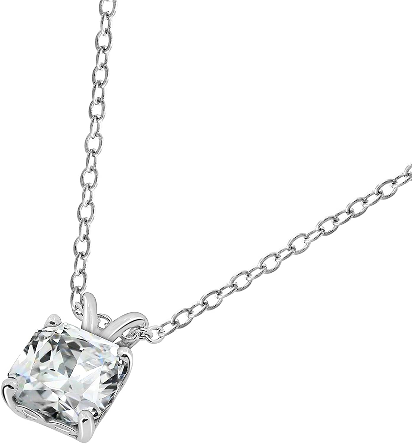 Argos pendant necklace in platinum-plated sterling silver with a square-cut single stone, made of Infinite Element zirconia