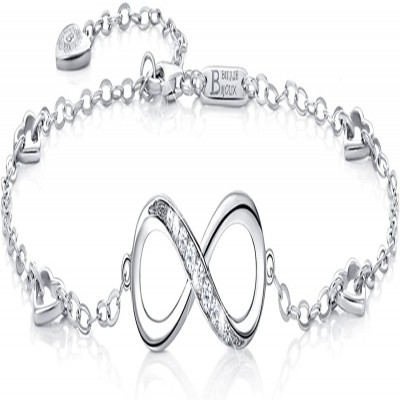 Billie Bijoux Women's 925 Sterling Silver Infinity Anklet Bracelet Endless Love Symbol Charm Adjustable Large Bracelet Women's Mother's Day Gift $152.0 |