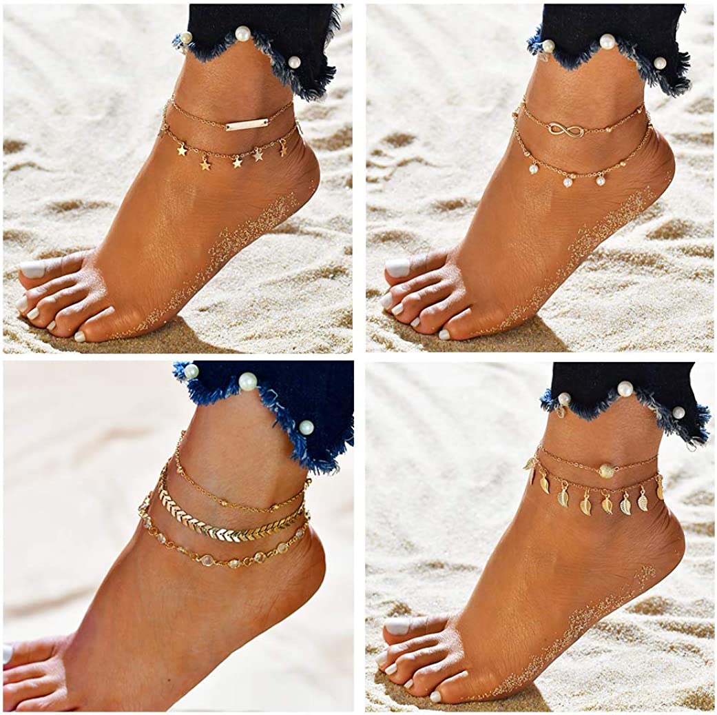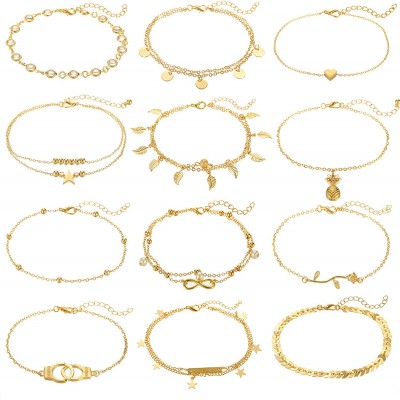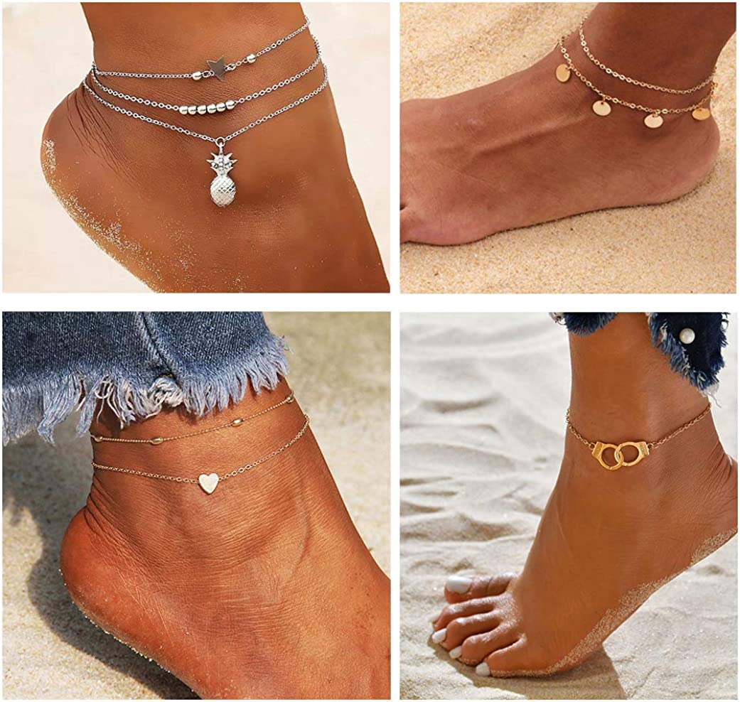 FUNEIA 12/16 Pieces Women's Anklet Silver and Gold Anklet Set Bohemian Layered Beach Adjustable Chain Anklet Foot Jewelry
