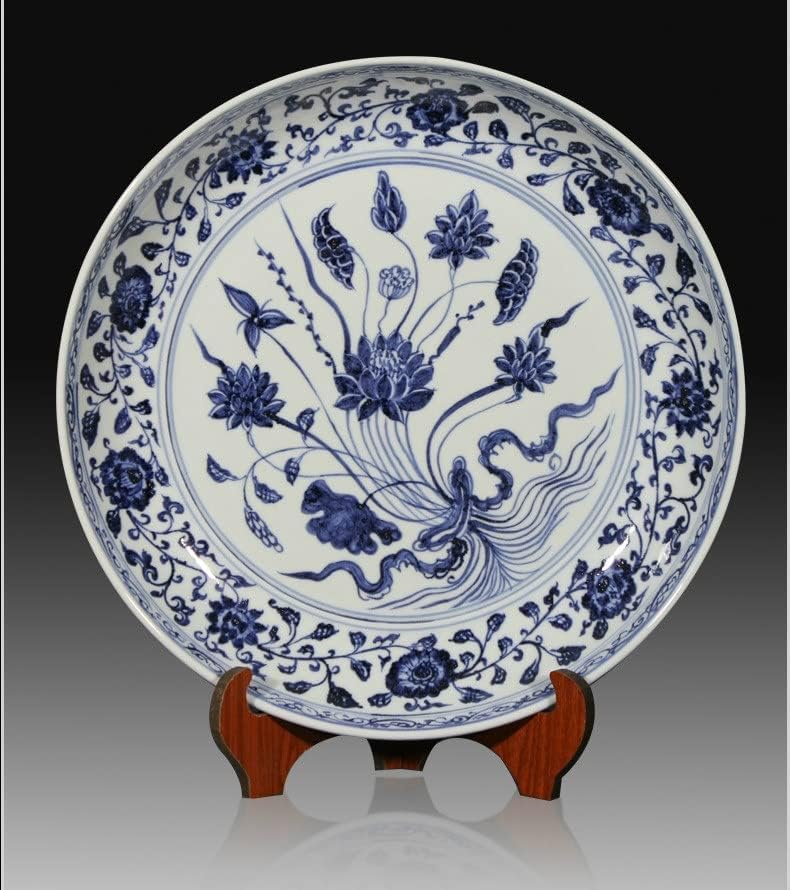 LIUYUNQI 16 Antique Classic Hand-Painted Cyanotype Decorative Round Ceramic Plate