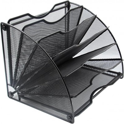 EasyPAG Desktop File Organizer 6-Compartment Scalloped File Paper Holder Alphabet Tray Desktop Organizer and Accessory, Black