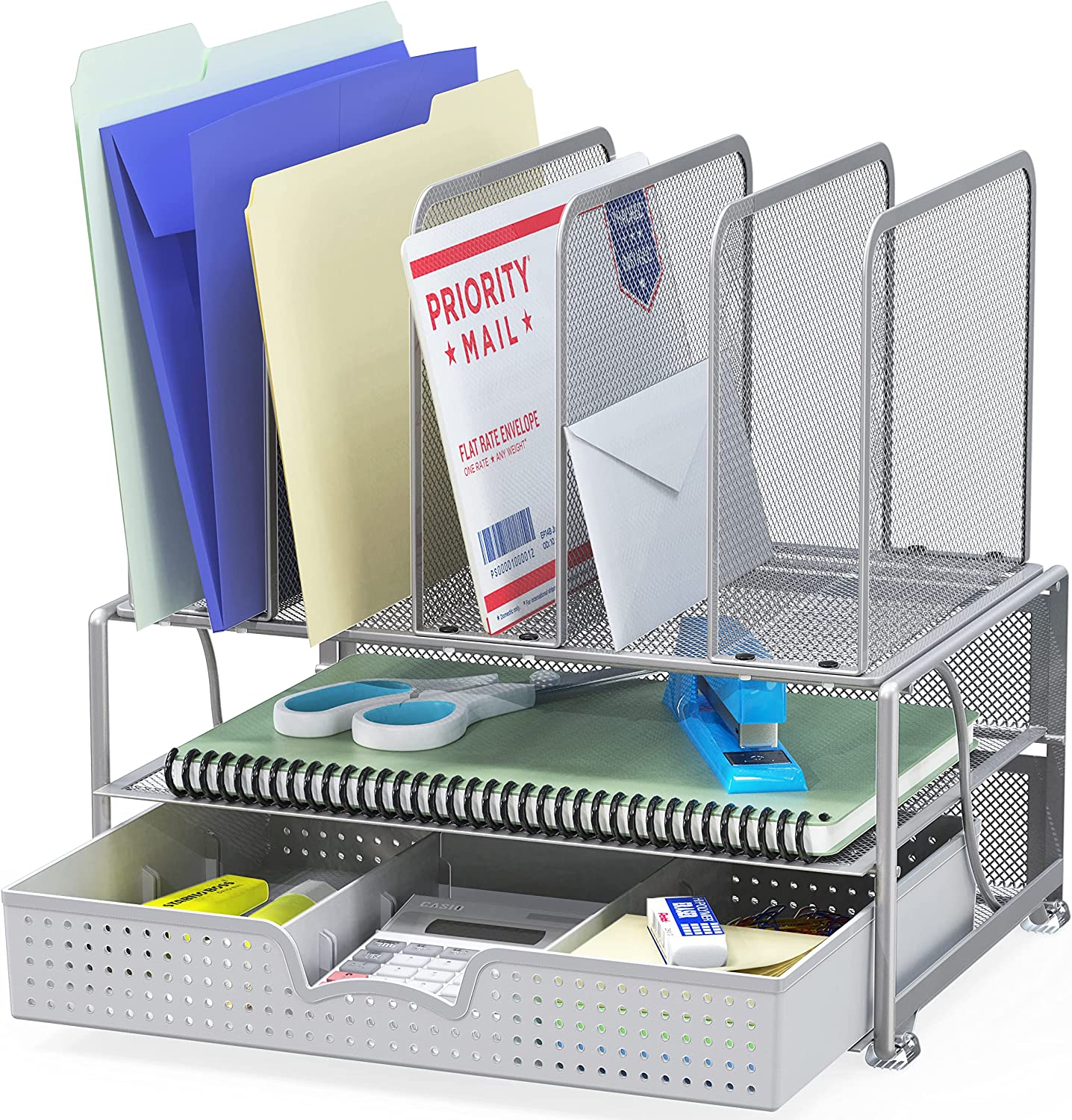 SimpleHouseware Mesh Desk Organizer with Sliding Drawer, Dual Trays, and 5 Upright Sections, Black $250.0 |