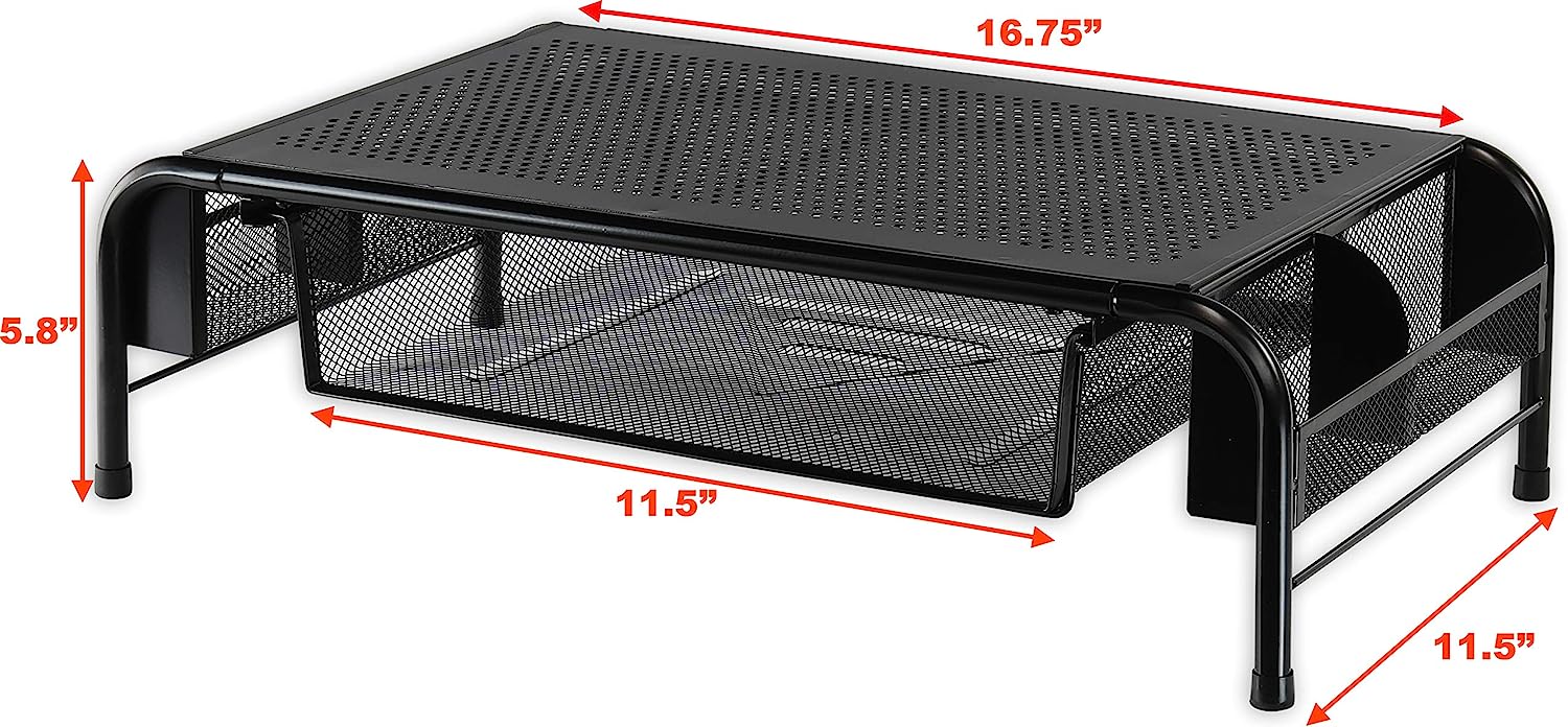 SimpleHouseware Metal Desktop Monitor Stand Riser with Organizer Drawer