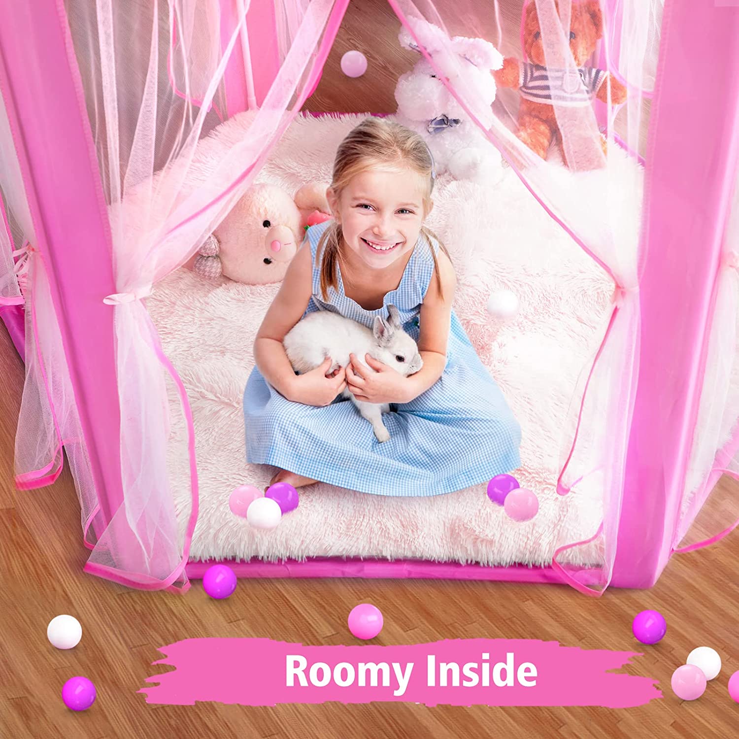 Monobeach Princess Tent Girl's Large Playhouse Children's Castle Play Tent with Starlight Toys for Children's Indoor and Outdoor Play, 55 inches x 53 inches (D x H)