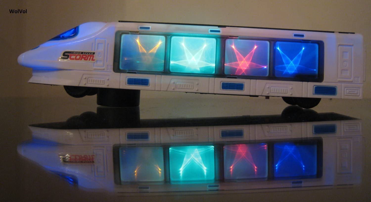 WolVolk Beautiful 3D Lightning Children's Battery Operated Train Toy with Music, Walks Around and Changes Direction on Contact