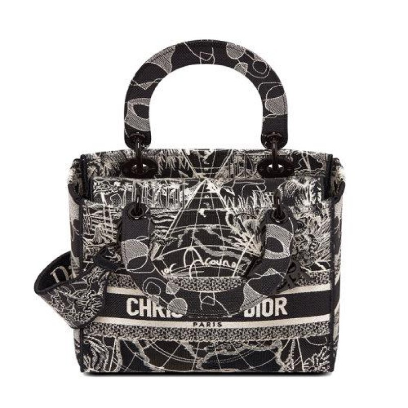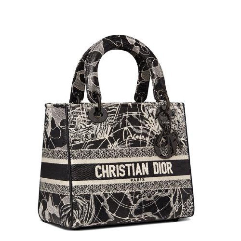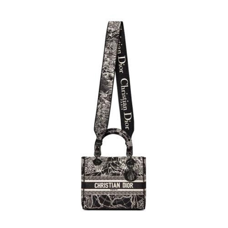 [Package Tax] DIOR/Dior 2021 Fall/Winter New LADY D-LITE Series Women's Medium Black and White Around the World Embroidery Handheld Crossbody Shoulder Bag M0565NRGP_M911