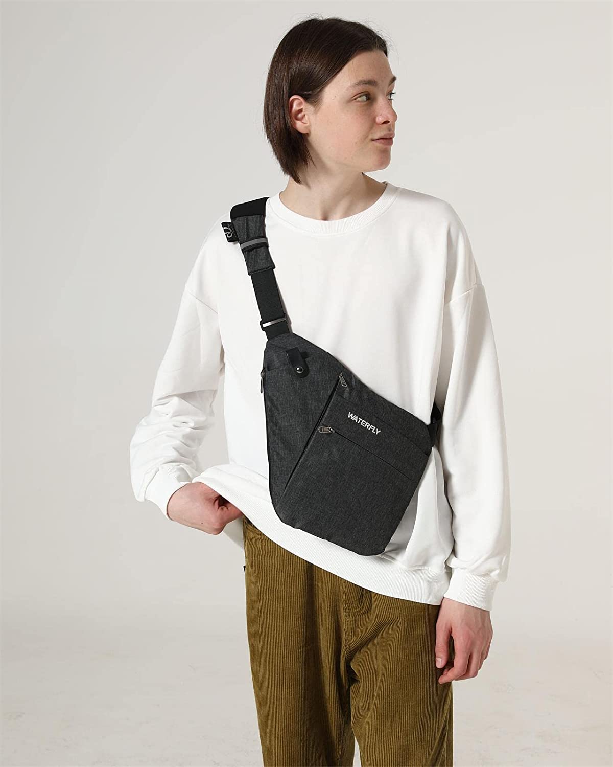 WATERFLY Sling Crossbody Chest Bag: Slim Anti Theft Crossbody Shoulder Bag Invisible Side Bags Men Women