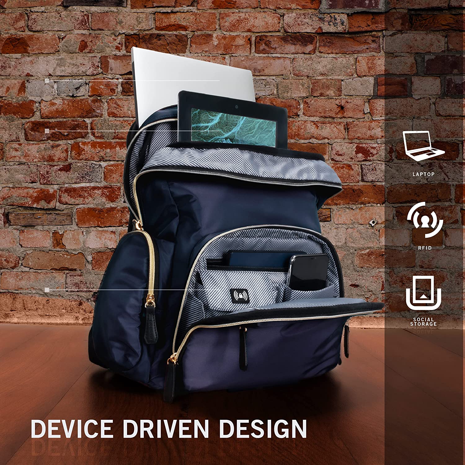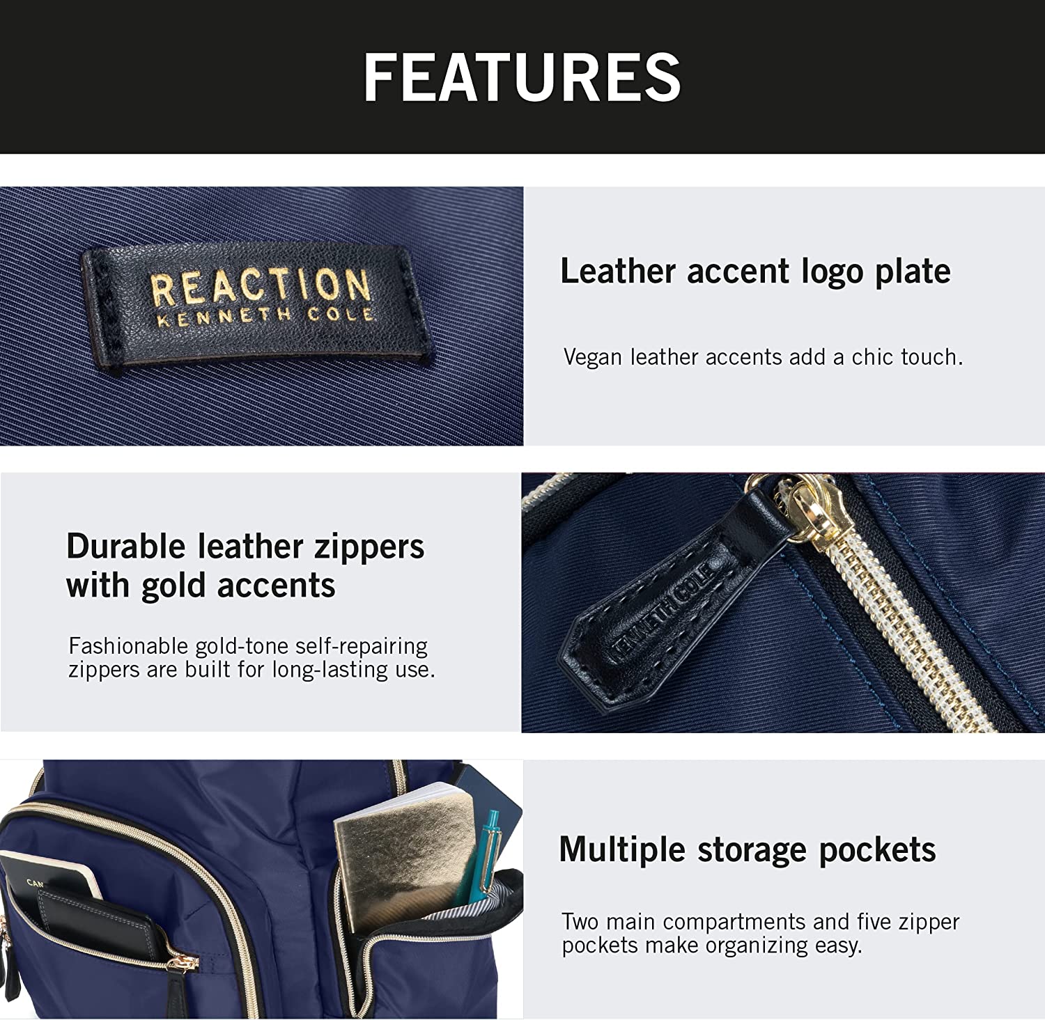 Kenneth Cole REACTION Women's Sophie Backpack Silk Nylon Laptop and Tablet RFID Book Bag, Navy, One Size $4581.0 |