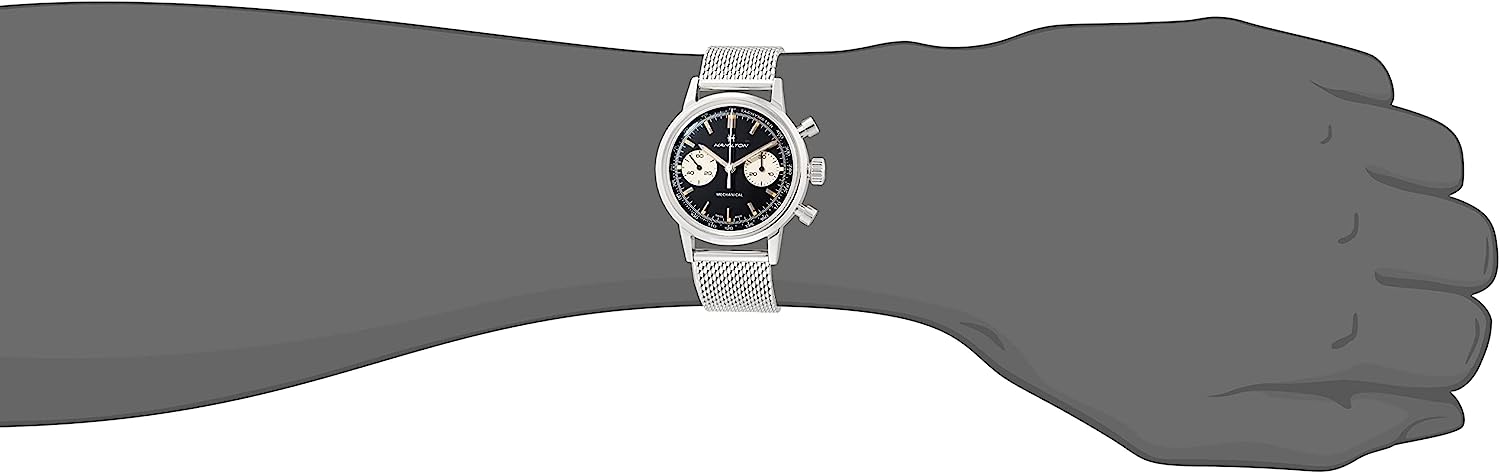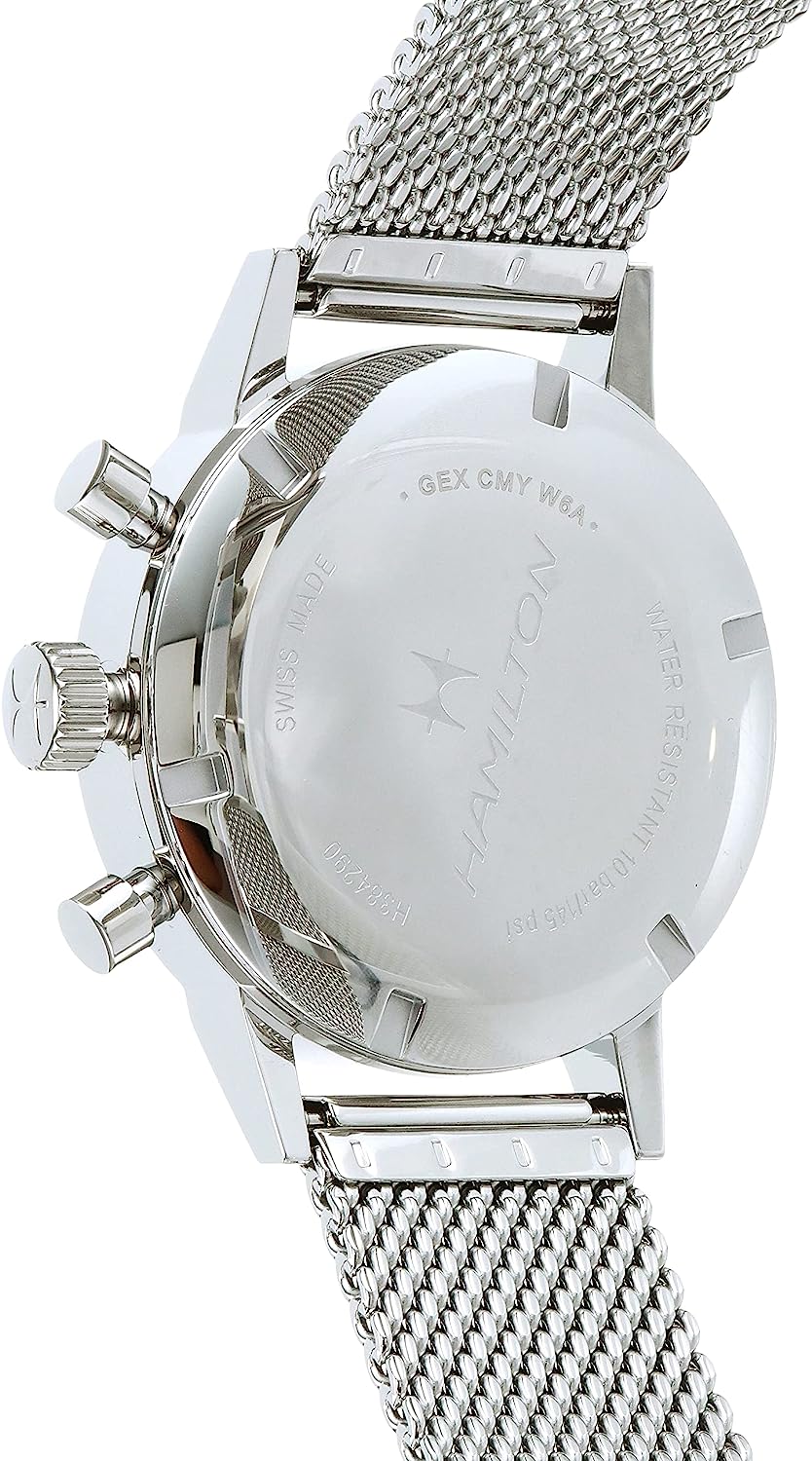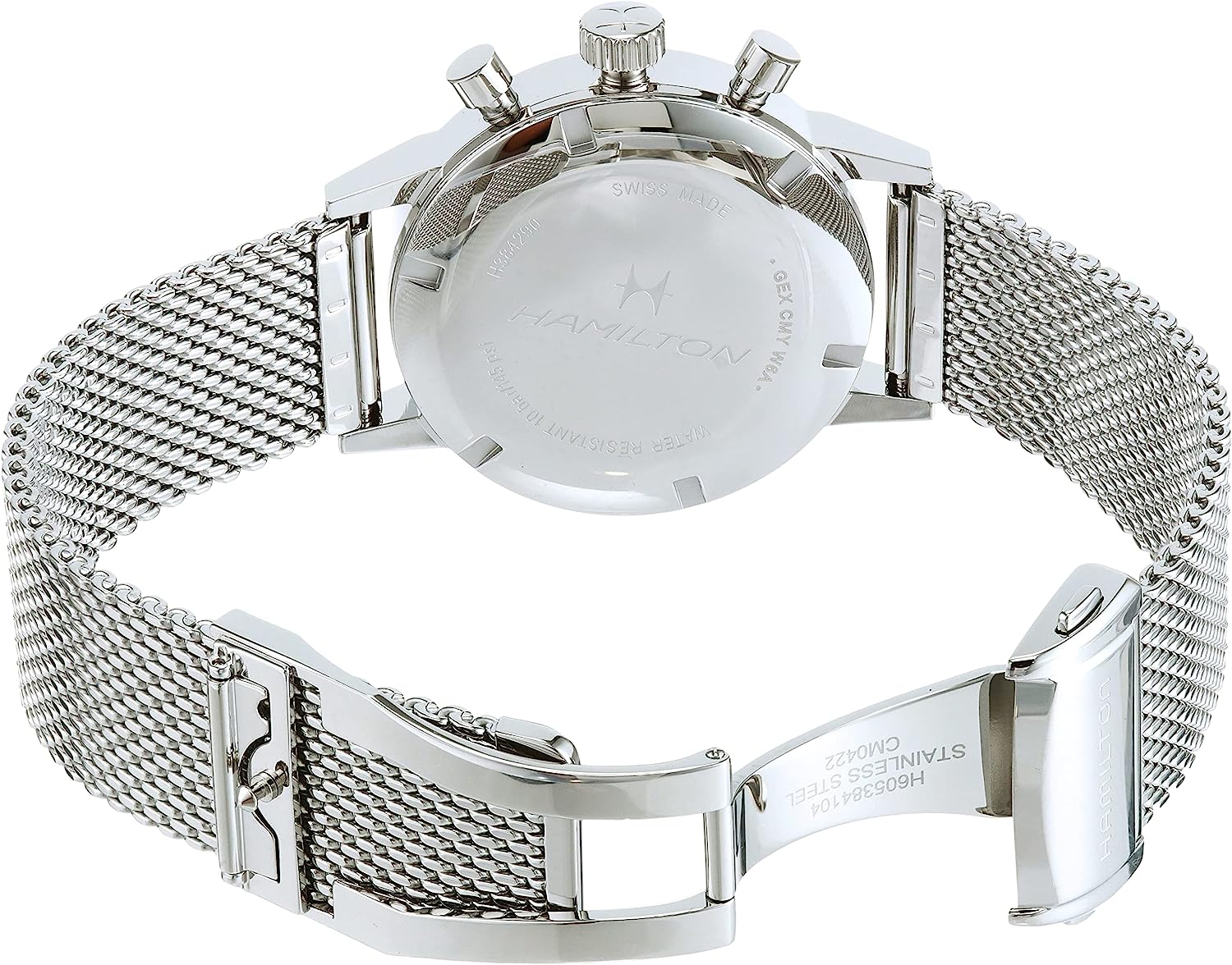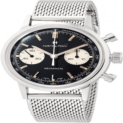 Mechanical Chronograph H Watch 40 mm case, black dial, silver-tone stainless steel bracelet (model no. H38429130)